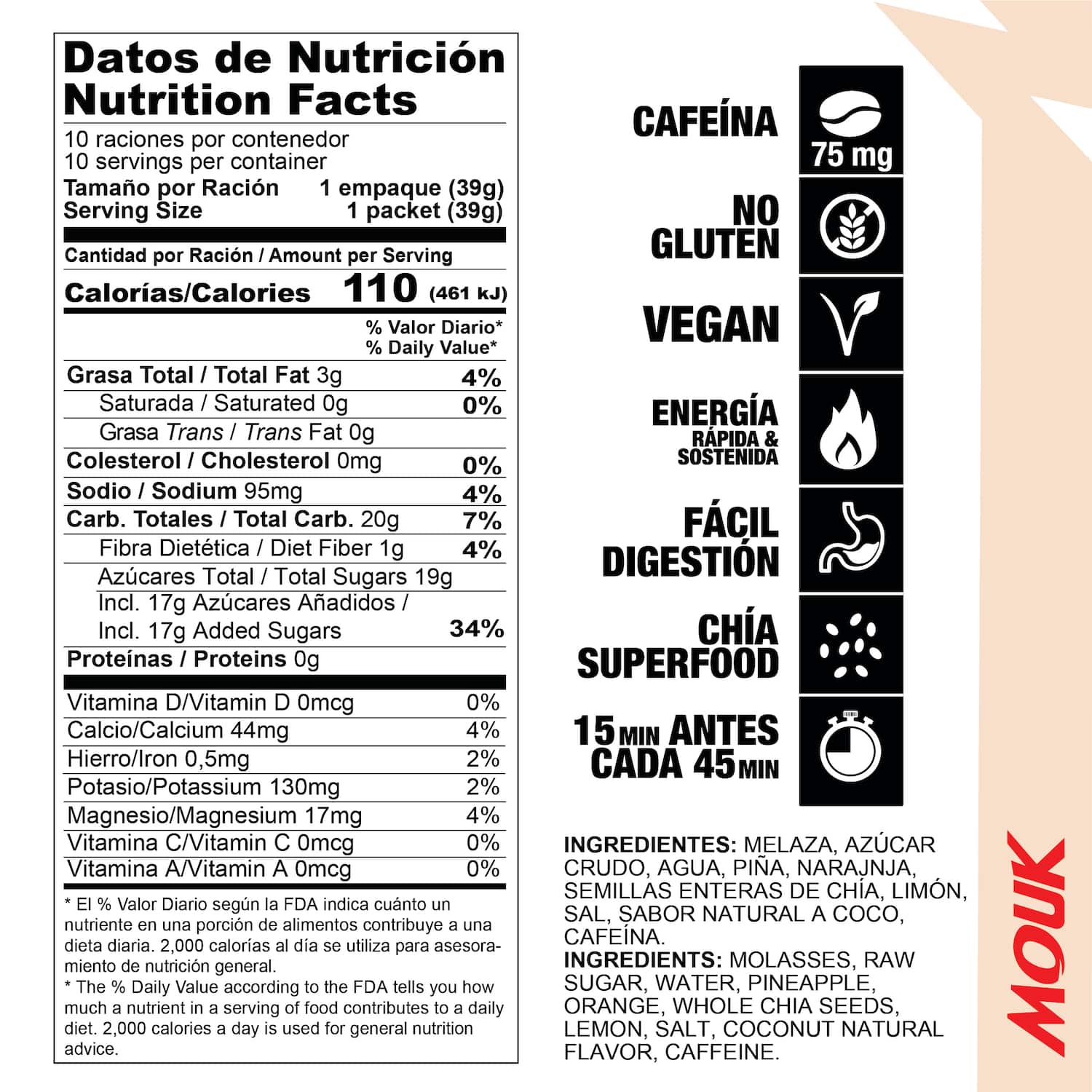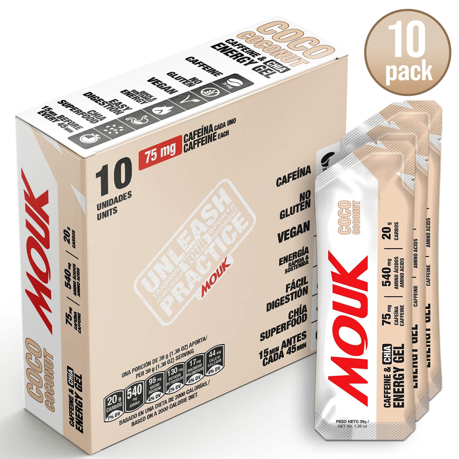 Gel Energético MOUK Sabor Coco 10 Pack | 75mg Cafeína | No Gluten