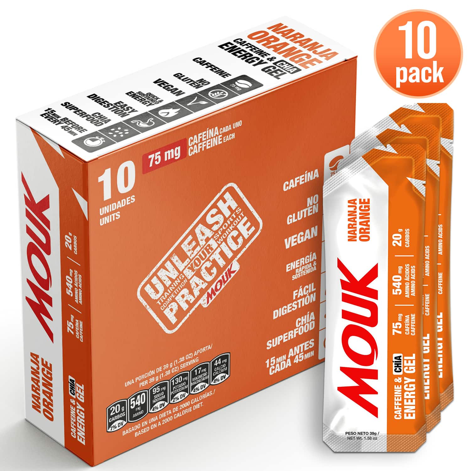 Gel Energético MOUK Sabor Naranja 10 Pack | 75mg Cafeína | No Gluten