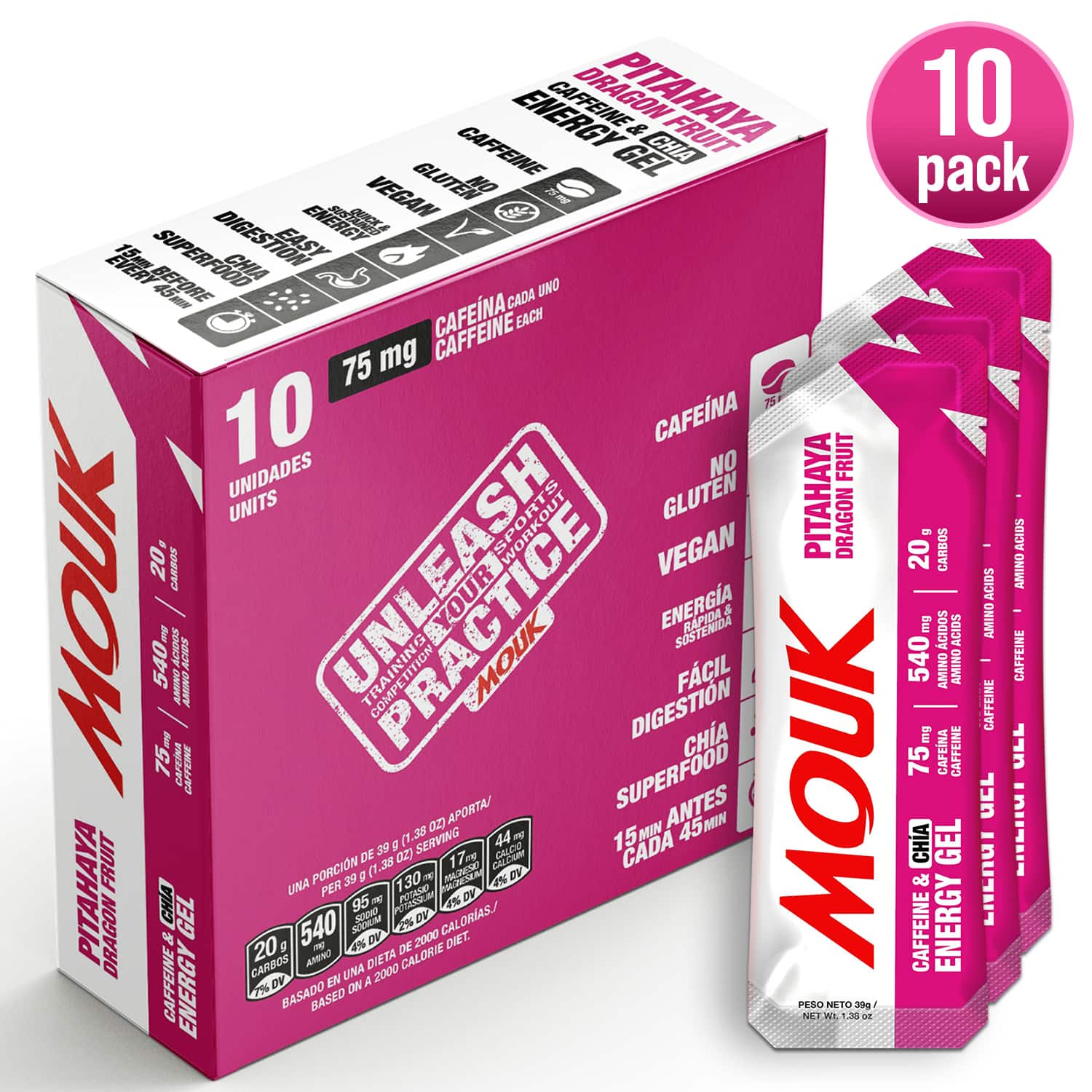 Gel Energético MOUK Sabor Pitahaya 10 Pack | 75mg Cafeína | No Gluten
