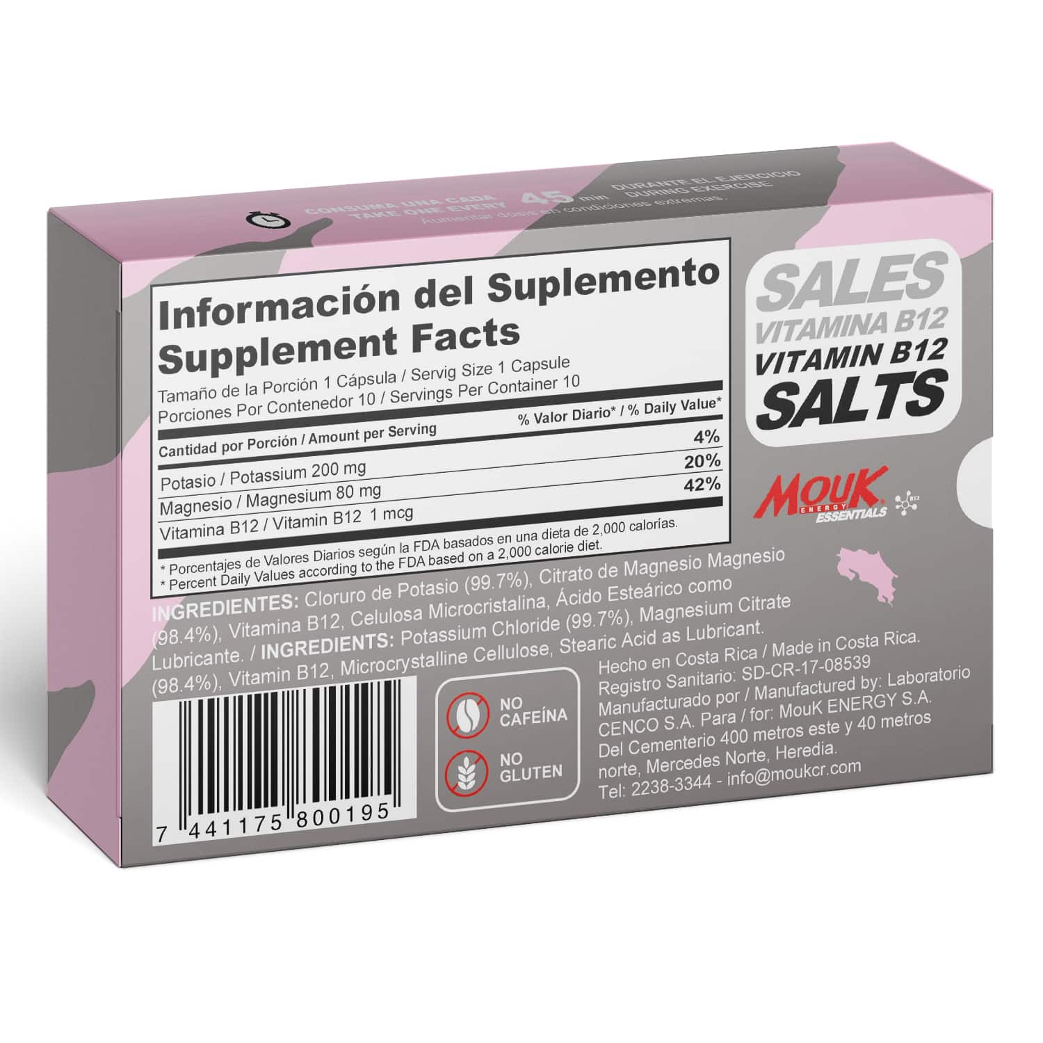 MOUK ESSENTIALS B12 se encarga de mantener los niveles adecuados de Potasio (K), Magnesio (Mg) y Vitamina B12 durante los entrenamientos, competencias e inclusive en el día a día.
