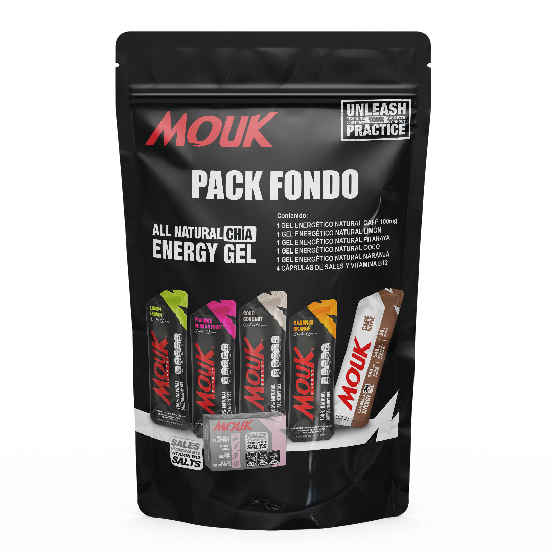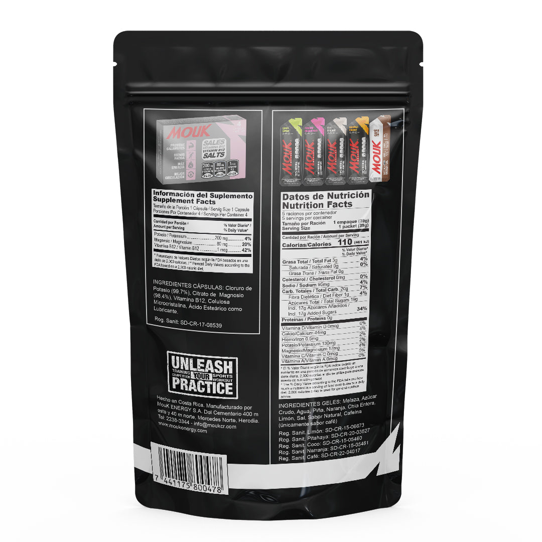 Pack Fondo: 5 Geles Energéticos Variados | 4 Cápsulas de Mg, K y Vitamina B12